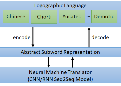 Despite the success of deep learning models in machine translation, their high computing complexity still strongly limits their applications such as those running on offline handheld translators. In machine translation, the size of the output layer is often proportional to the size of the target dictionary. Compacting the target dictionary consequently reduces the model size and speeds up model training and inference. To compact the target dictionary, we propose a logographic subword model that represents logograms as multiple “abstract subwords”.