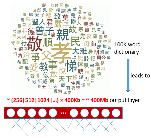 The proposed approach has been shown with experiments to reduce model sizes as well as shorten training and inference time for both RNN and CNN sequence-to-sequence models. It is promising for reducing the complexity of other computationally expensive NLP problems with potential impact on large-dictionary real-time offline applications such as translation or dialog systems on offline mobile platforms. References